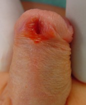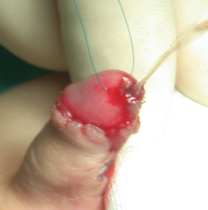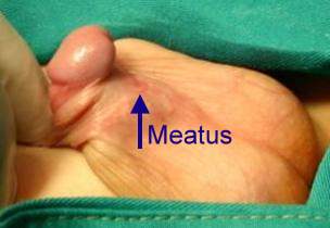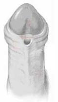 Special form of glanular hypospadias with intact foreskin and mega meatus | |